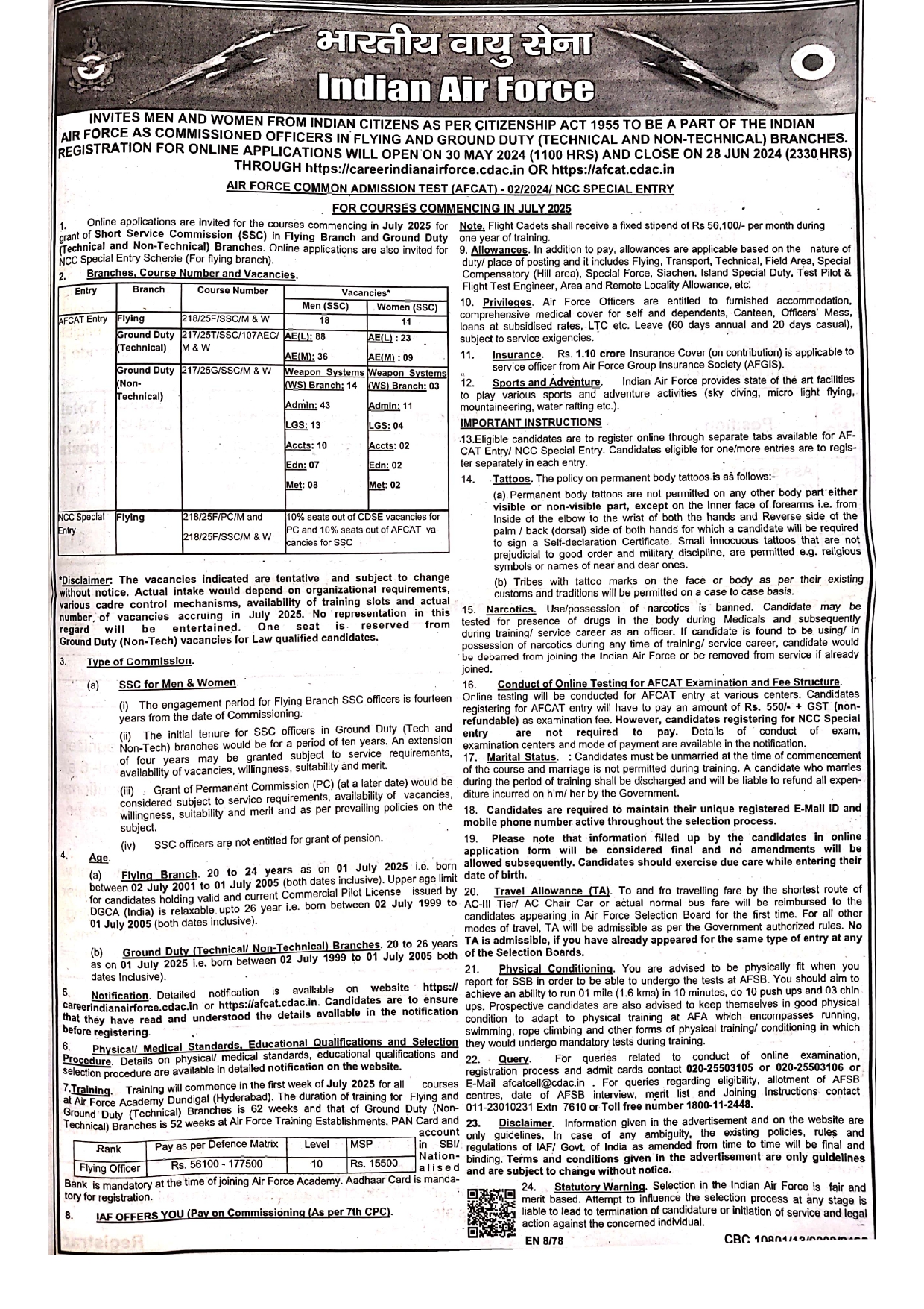 IAF Vacancy Details May 2024
