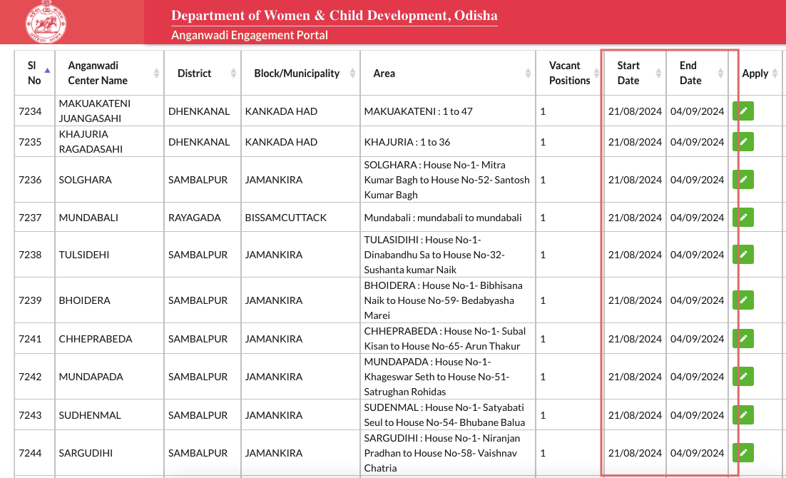 Eligible candidates can apply Online at Odisha Anganwadi official website wcdodisha.gov.in, Starting from 14-Sep-2024 to 20-Oct-2024.