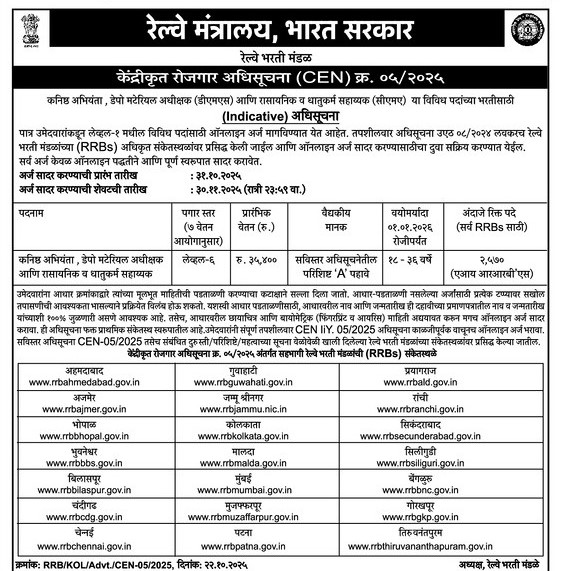 Railway Board Vacancy Details October 2025