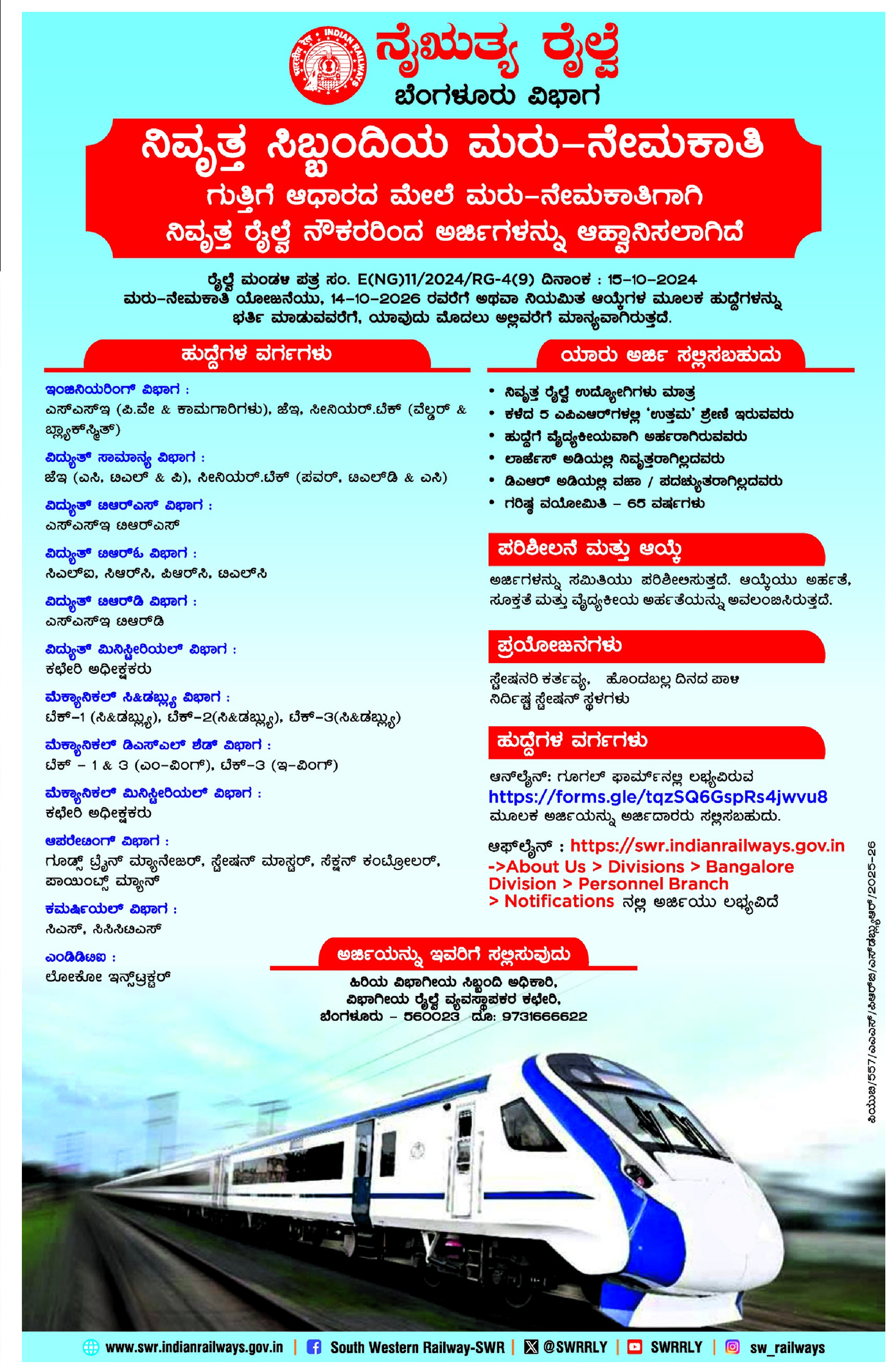 - Official Website: swr.indianrailways.gov.in