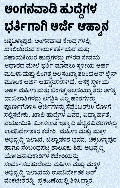 How to apply for WCD Chikkaballapur Recruitment (Anganwadi Worker & Helper) Jobs